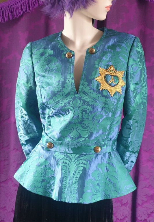 Handmade Damask Peplum Blouse with Goldwork Embroidery Crest