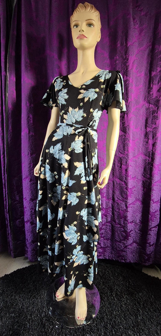 Blue Leaves Whimsical Layered 1970s Maxi Dress