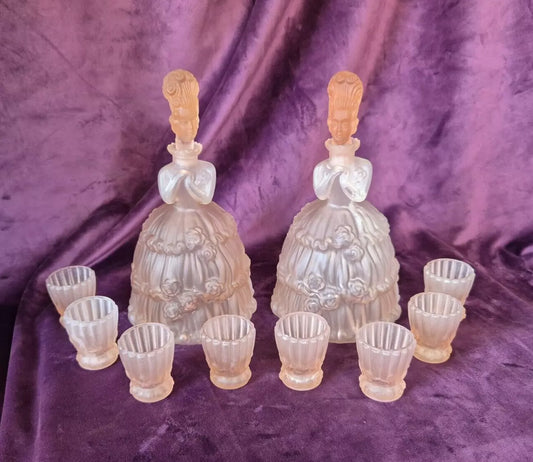 Art Deco Madame Pompadour Decanter & Shot Glass Set