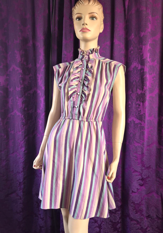 Vintage 1980s Lavender Stripe Ruffled Front Skater Dress