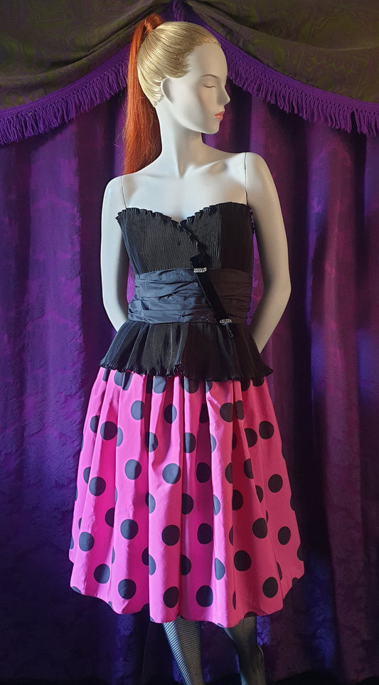 Vintage 1980s Hot Pink Polka Dot Ballgown by Trina Lewis and Marjon Couture