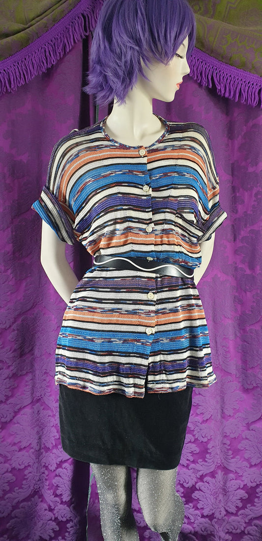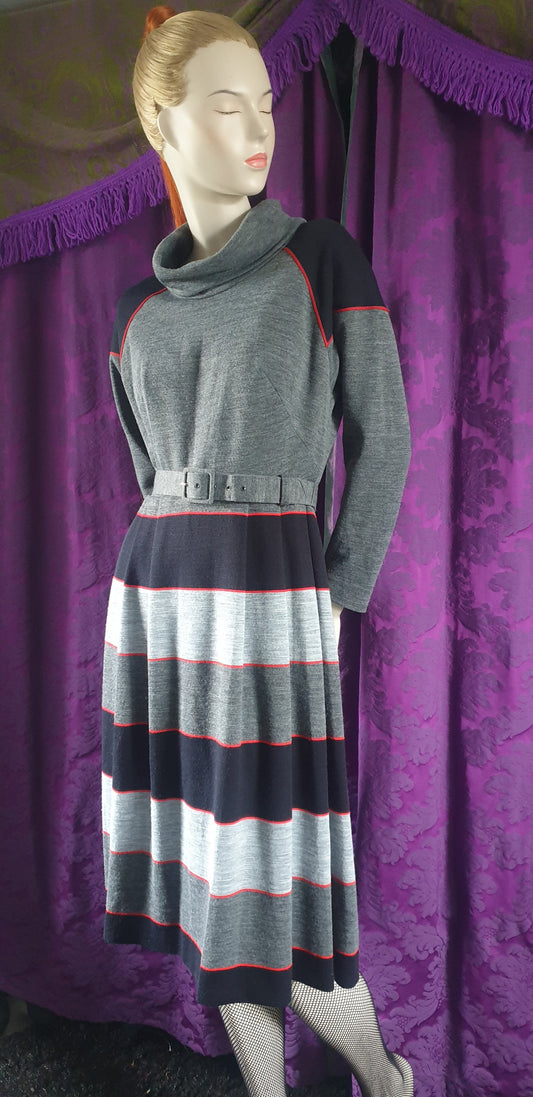 Vintage 1980s Striped Skirt Batwing Sleeve Dress