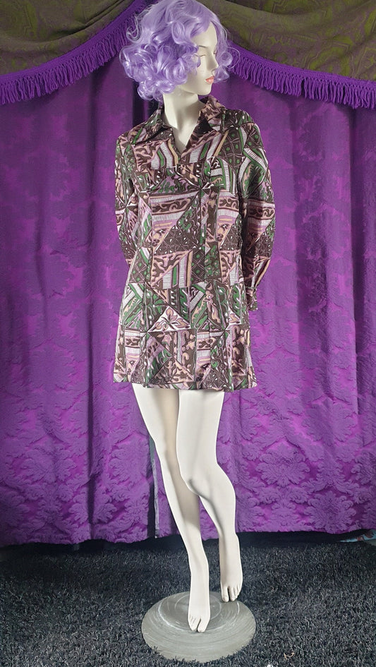 Vintage 1970s Tile Print Barkcloth Minidress
