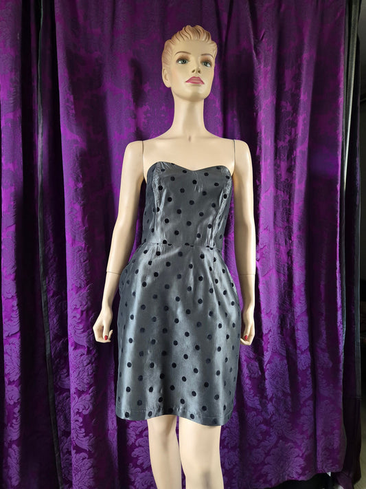 Vintage 1980s Silver Taffeta Strapless Spotted Minidress