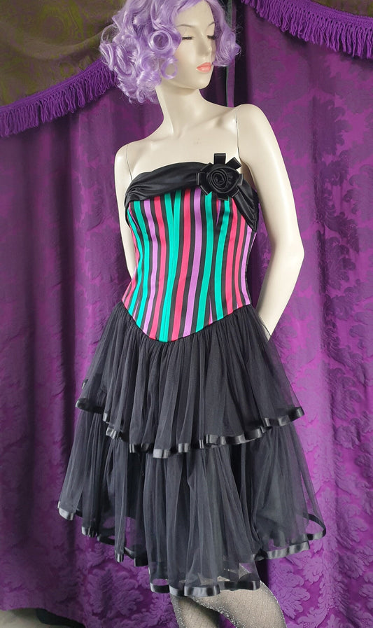 Vintage 1990s Frank Usher Striped Corset Party Dress