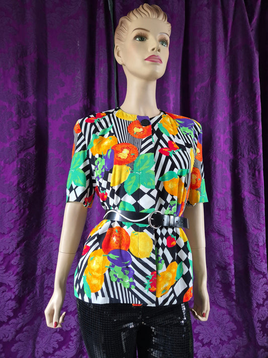 Vintage 1990s Bright Fruit & Op Art Print Jacket by Reldan