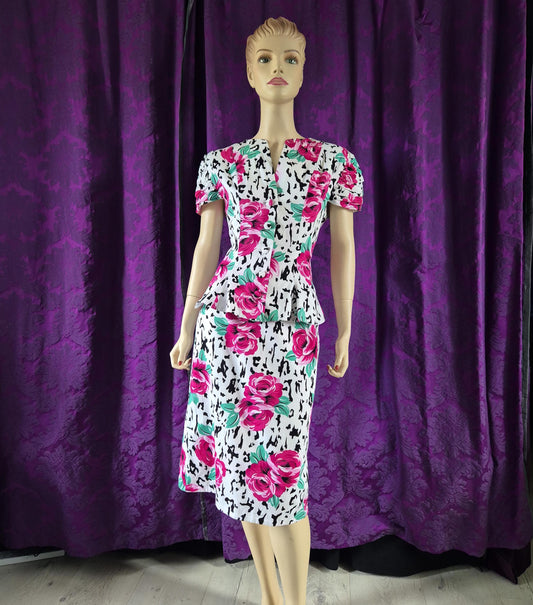 Vintage 1990s Gina Bacconi Cotton Rose Print Suit (Jacket & Skirt)