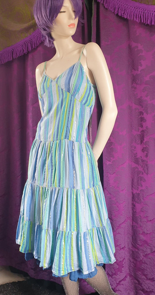 Vintage PHOOL Lurex Stripe Crinkle Cotton Ruffled Sundress
