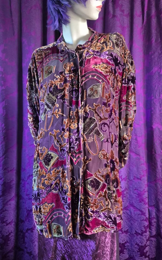 URU Kristine St Rrik Silk Velvet Devorré Tunic Blouse