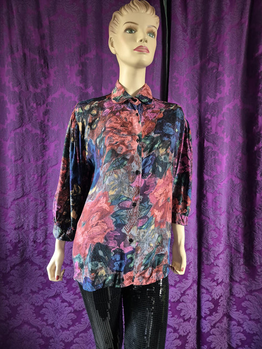 Vintage 1990s Rayon Floral Blouse by "Flam"