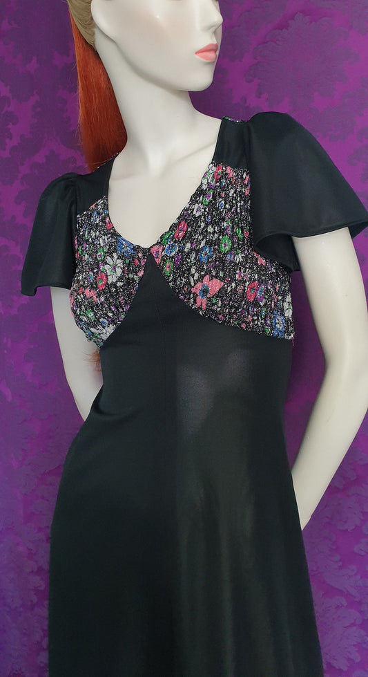 Vintage 1970s Maxi Gown with Lurex Floral Bodice