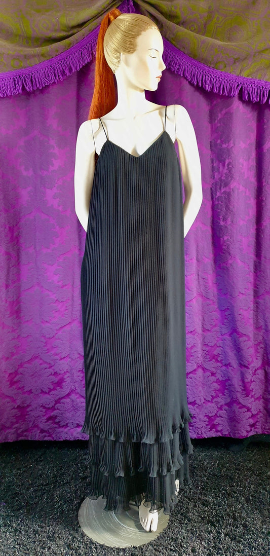 Vintage 1970s Layered Pleated Black Maxi Grecian Column Dress