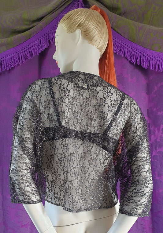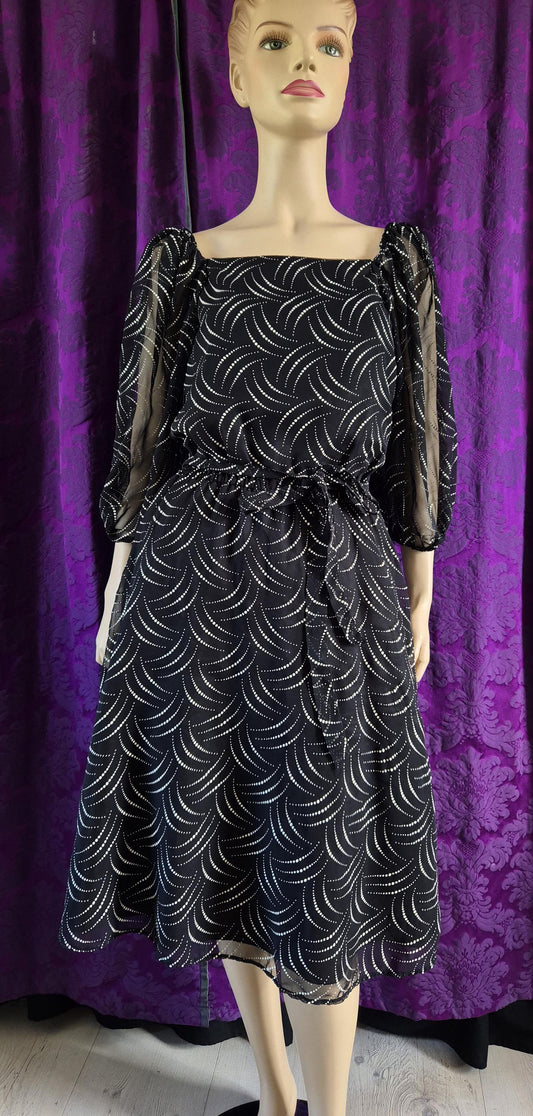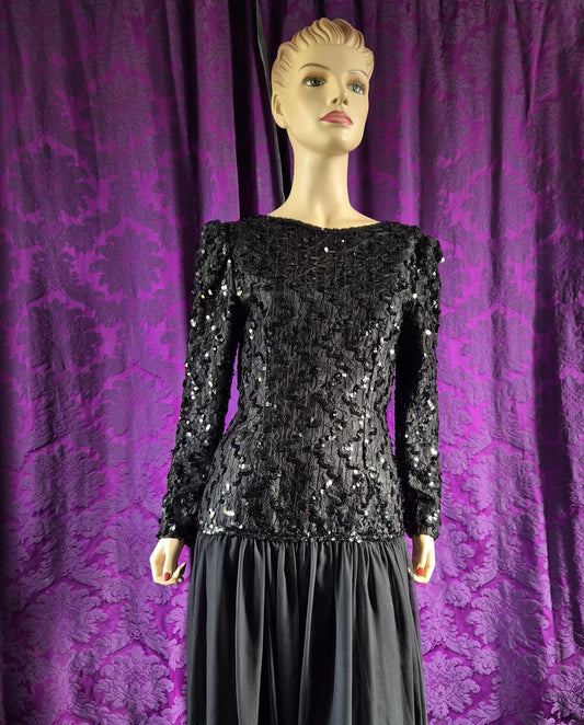 Vintage 1980s Black Sequin Bodice Demure Goth Gown