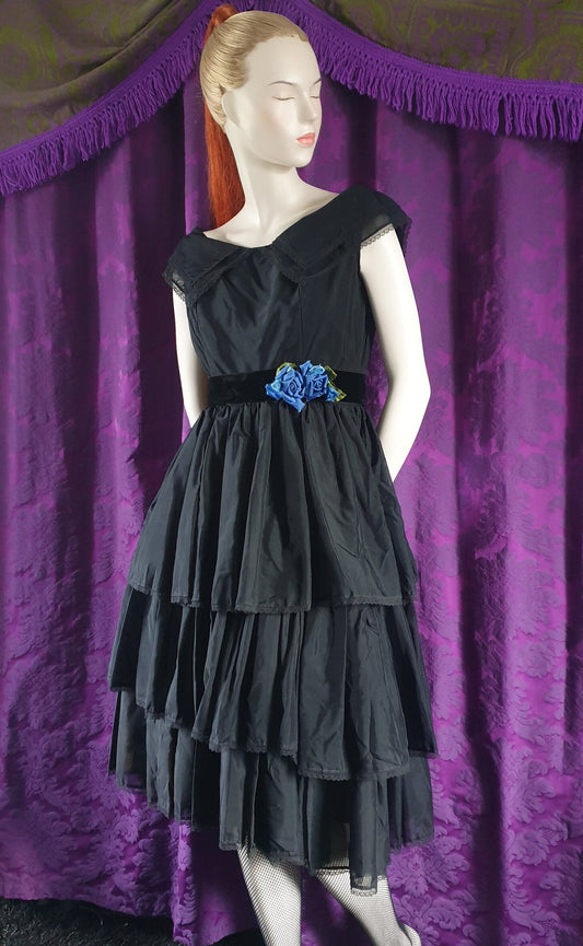 Vintage 1950s John Selby Tiered Ruffled Gothic Prom Dress