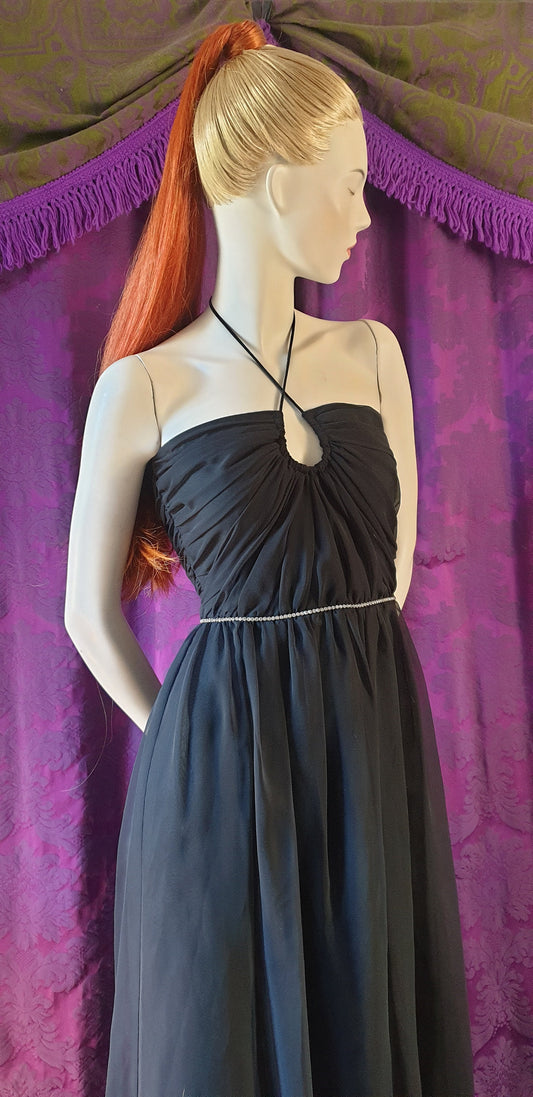 Vintage 1990s Chiffon Layered Goth Prom Dress