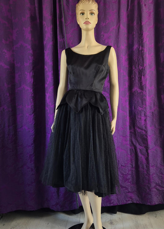 Vintage 1950s Satin Petal Peplum Tulle Gothic Prom Dress