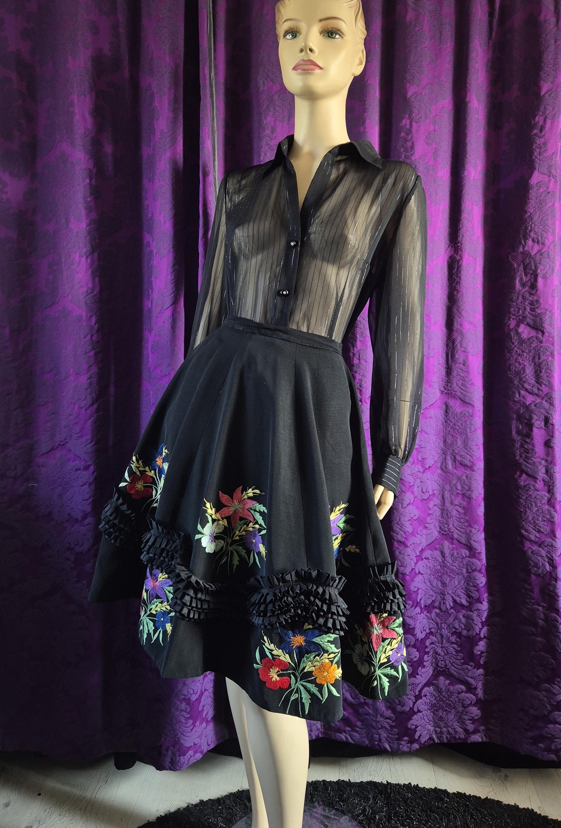 Vintage 1950s Embroidered Ruffled Folkloric Circle Skirt