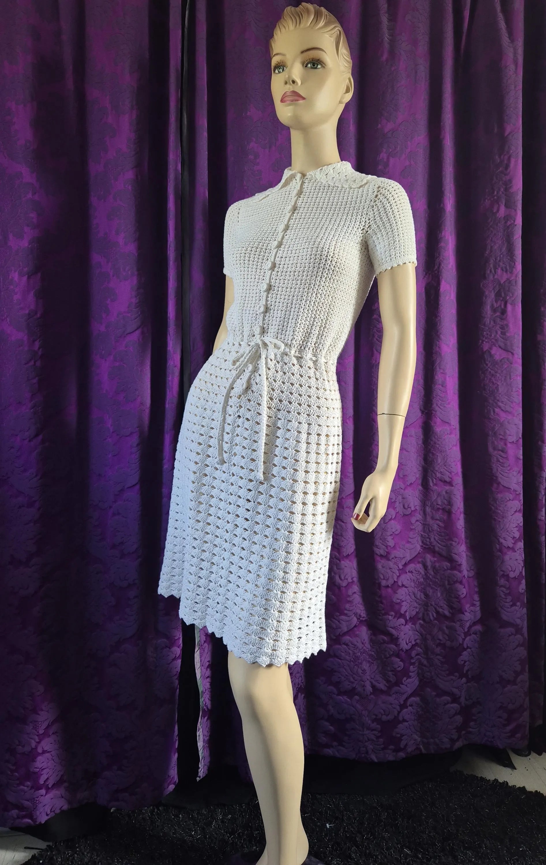 Vintage 1970s White Crocheted Dress